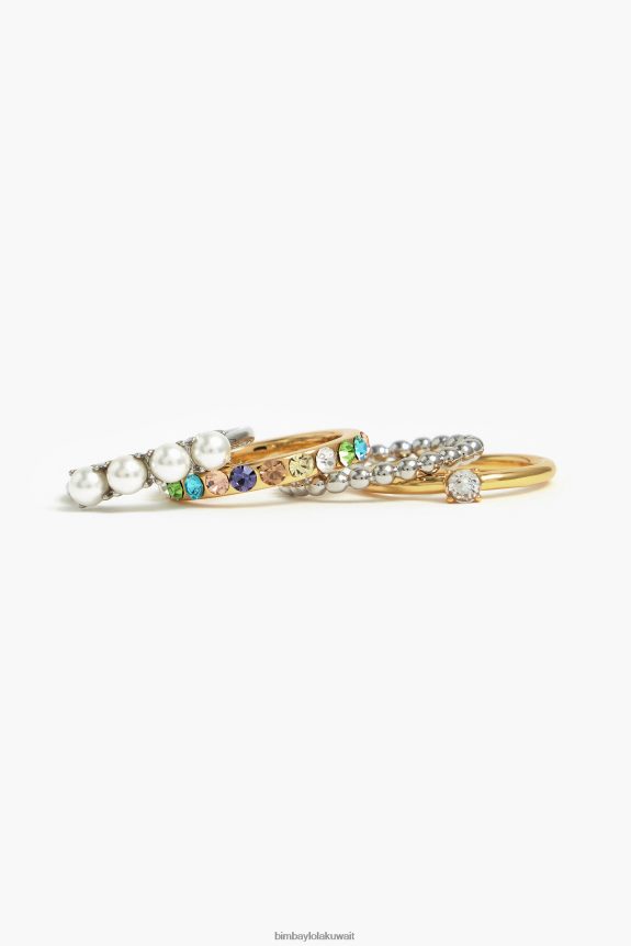 مجموعة من أربع حلقات معدنية ، اثنان مع بلورات. مخصصة مع شعار محفور.