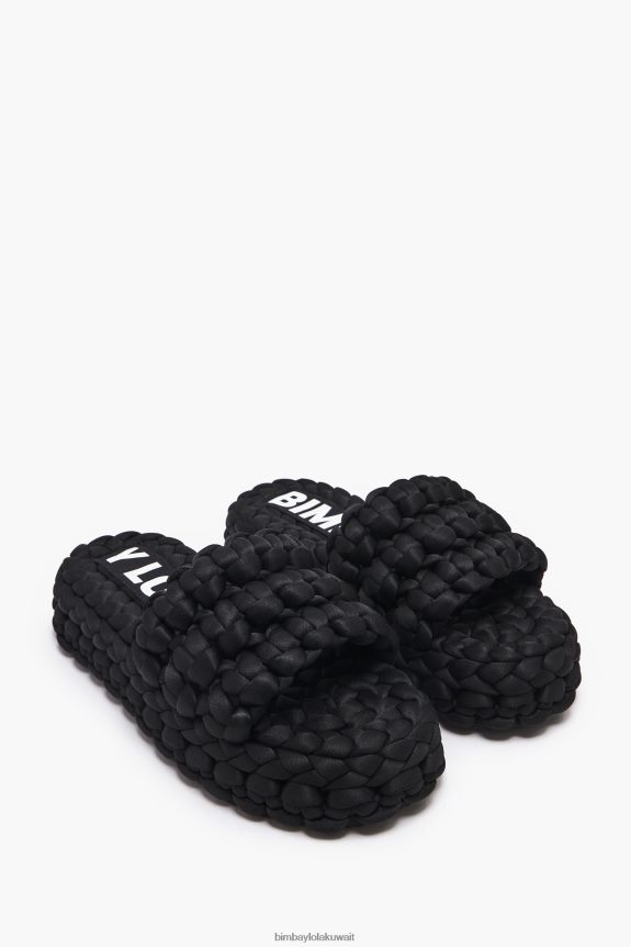 كو Bimba Y Lola صندل مسطح مضفر أسود 24BTV4573 القدم