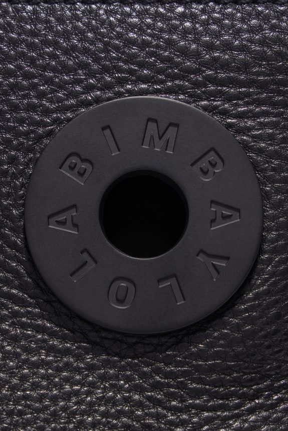 حقيبة كروس جلدية من الجلد الأسود. موديل متوسط الحجم بقفل بسحاب وحزام كروس قابل للإزالة. تصميم خارجي مع شعار المينا شيمو. 100٪ بوليستر معاد تدويره.