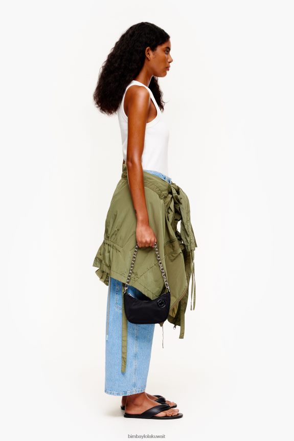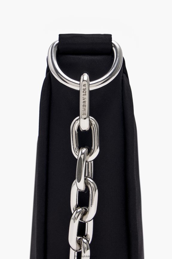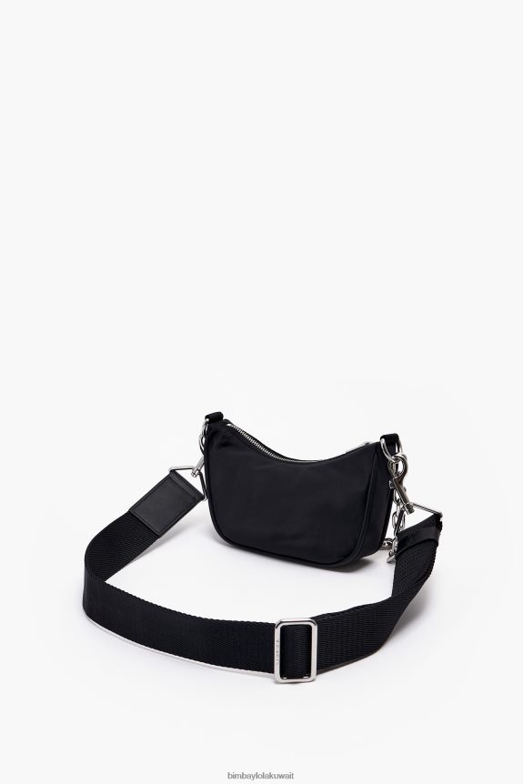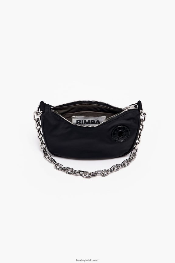 حقيبة كروس هاف مون نايلون باللون الأسود. موديل صغير مع قفل بسحاب وحزام سلسلة وحزام قماش قابل للإزالة. تصميم خارجي مع شعار شيمو المينا.