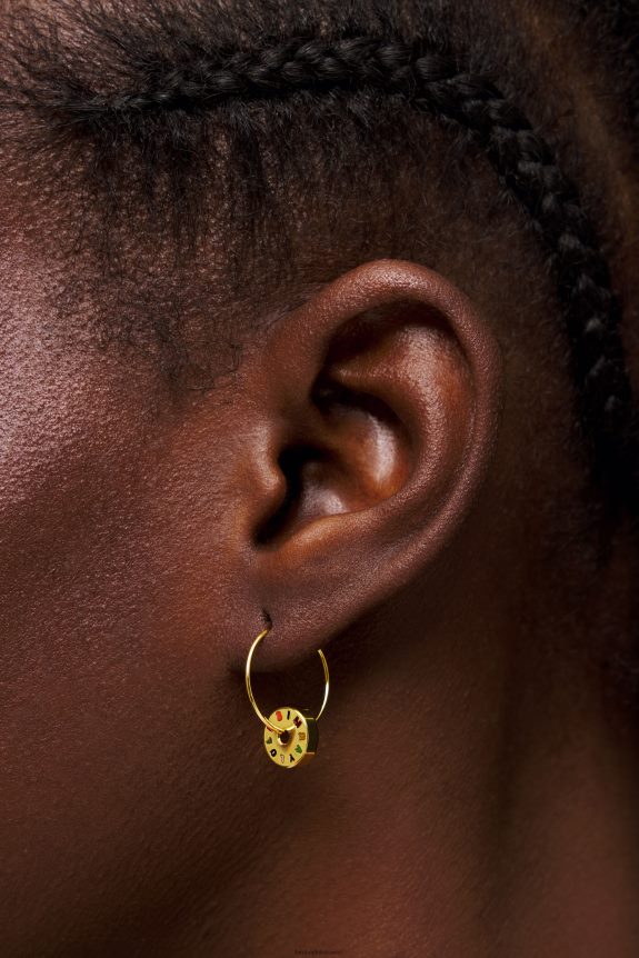 كو Bimba Y Lola أقراط دائرية بشعار صغير ذهبي ومتعدد الألوان 24BTV4834 مُكَمِّلات