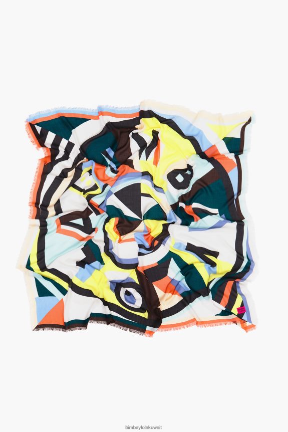 شال مربع مطبوع عليه شعار هندسي متعدد الألوان.
