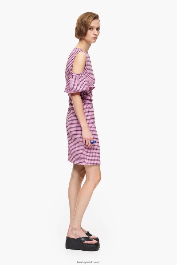 كو Bimba Y Lola فستان قصير مجسم كاروهات لون القرنفل 24BTV4238 ملابس