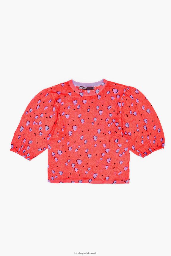 كو Bimba Y Lola سترة كتان صغيرة مطبوعة القلب أحمر 24BTV4367 ملابس