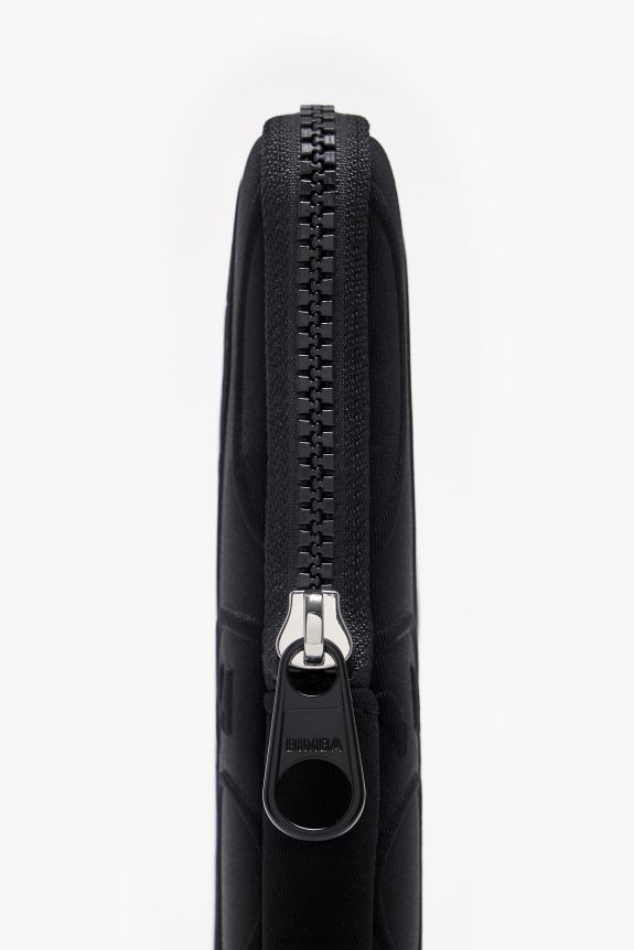 كم كمبيوتر محمول أسود. موديل متوسط مع قفل بسحاب وسحب معدني. تصميم خارجي مع شعار شيمو منقوش. متوافق مع أجهزة الكمبيوتر المحمولة 13.5.