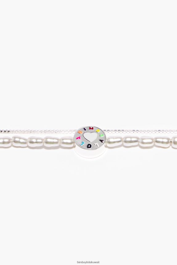 عقد قصير مع سلسلة معدنية من الفضة واللؤلؤ. موديل بشعار مينا متعدد الألوان.