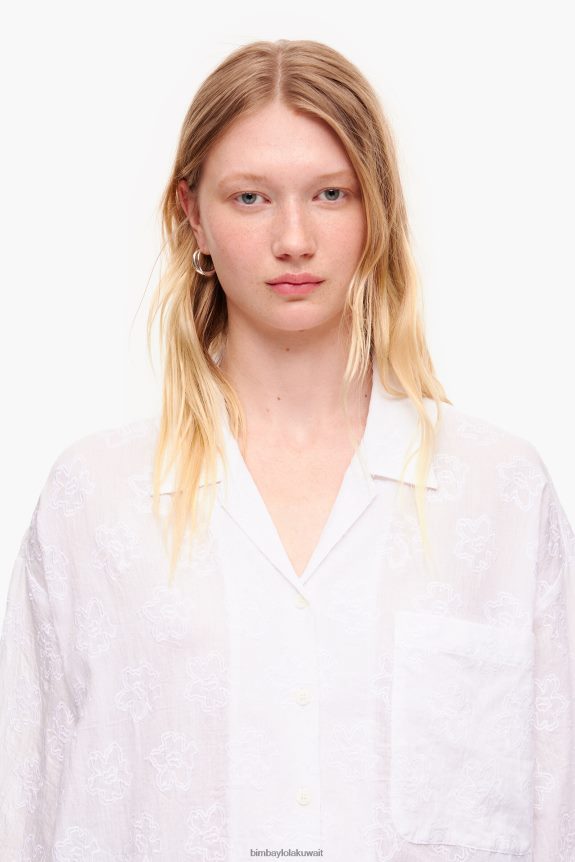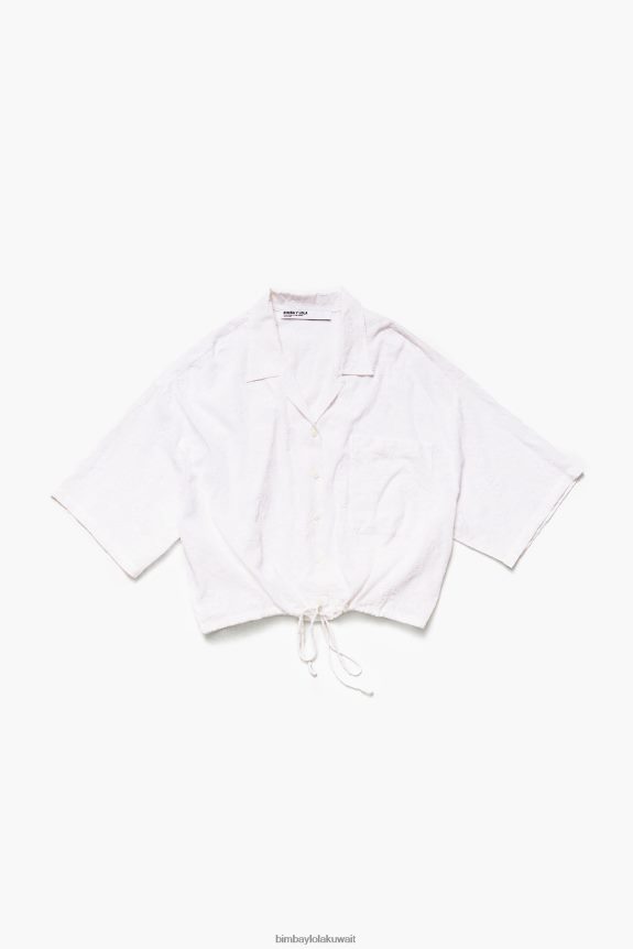 بلوزة قصيرة من الجاكار بالزهور. موديل بقصة مستقيمة وأكمام طويلة وياقة قميص. زر في الأمام.