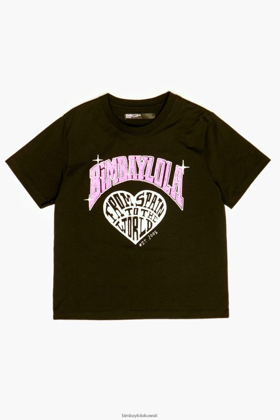 كو Bimba Y Lola تي شيرت بشعار الجامعة أسود 24BTV4276 ملابس