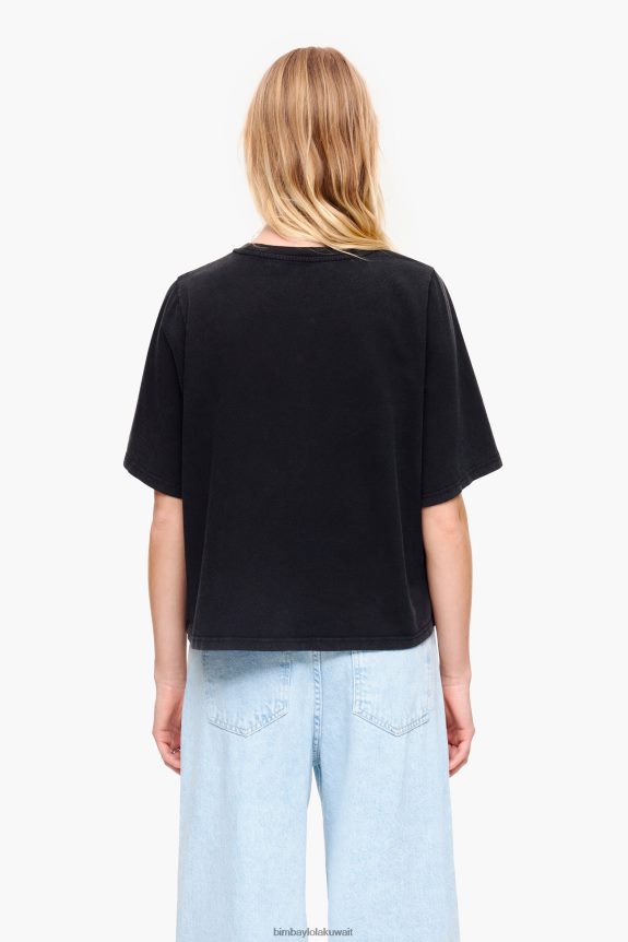كو Bimba Y Lola تي شيرت قطني بشعار الماركة مغسول بالأسود 24BTV4280 ملابس