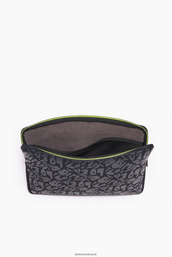 كم كمبيوتر محمول باللون الأسود مع طباعة Bimba Ola. نموذج مع قفل بسحاب وسحب معدني. متوافق مع أجهزة الكمبيوتر المحمولة 13.5.