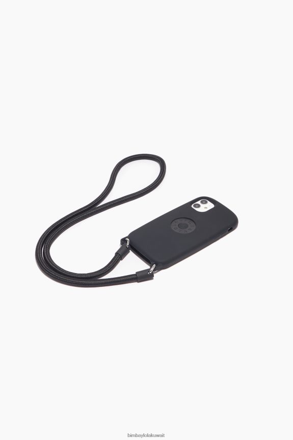 جراب IPhone 11 من السيليكون الأسود مع شعار Chimo المعدني المطلي بالورنيش المطابق. نموذج مع حزام العنق.