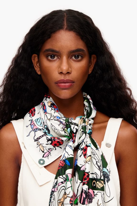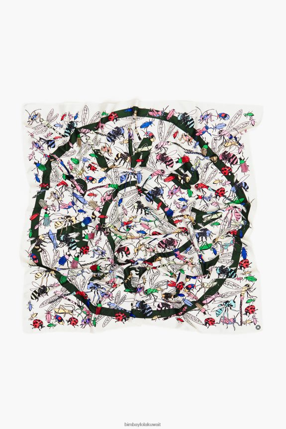 وشاح مربع مع طبعة حشرة مختلطة متعدد الألوان وشعار Xl على خلفية بيضاء. يحتوي هذا الطراز على 100٪ بوليستر معاد تدويره.